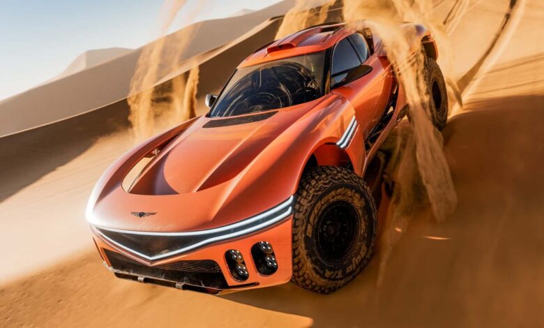 این خودروی کوپه بلند با رینگهای ۱۸ اینچی بیدلاک و لاستیکهای عظیم ۴۰ اینچی آفرودی، انگار مستقیما برای بلعیدن تپههای شنی طراحی شده است. جنسیس میگوید X Scorpio با الهام از سبک زندگی اشرافی خاورمیانه شکل گرفته؛ جایی که قدرت، ارتفاع و توانایی حرکت خارج از جاده اهمیت ویژهای دارد. همین رویکرد، ارتفاع زیاد خودرو از سطح زمین و تمرکز بیش از حد روی قابلیتهای آفرود را توضیح میدهد.