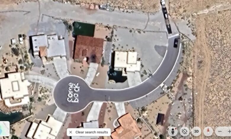 وینس گیلیگان محلهی زندگی کارول در آلبوکرکیِ نیومکزیکو را بهطور اختصاصی فقط برای این سریال ساخت و اگر نگاهی به تصاویر گذشتهی آن در گوگل Earth در مرداد و شهریور ۱۴۰۳ بیندازید، عبارت «برگرد» (Come Back) را درست وسط خیابان خواهید دید.یکی از طرفداران Pluribus با جستوجوی مختصات دقیق 35°09’55.4″N 106°44’46.4″W پیام مذکور را پیدا کرد. نکتهی جالب اینکه اگر در زمان به عقب (مرداد و شهریور ۱۴۰۲) یا جلو (اسفند ۱۴۰۳ و فروردین ۱۴۰۴) بروید، کلمات دیگر آنجا نیستند.